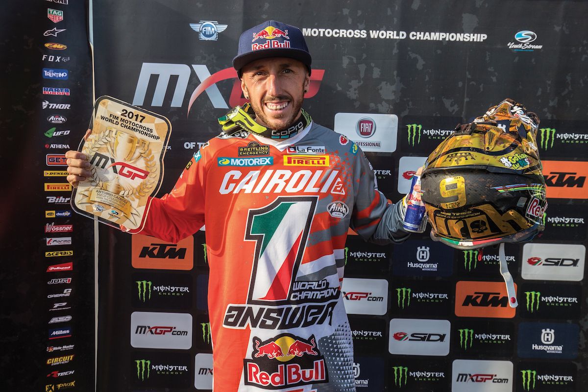 In der Saison 2017 dominierte Cairoli so gut wie jede Statistik. Er erzielte die meisten Pole Positions (sechs), führte die meisten Rennrunden an, feierte neun Laufsiege (eine Zahl, die Jeffrey Herlings am Sonntag in Assen einholte), gewann bis zum Rennen in den Niederlanden sechs Grand Prix und stand dreizehnmal auf dem Podium. Nach zwei vom Verletzungspech geprägten Jahren, hatte Cairoli das Red Plate des WM-Führenden seit dem siebten Rennen inne und zeigte mit seinen 31 Jahren, dass er immer noch zu den Topfahrern in einer der am härtesten umkämpften MXGP-Saison gehört.