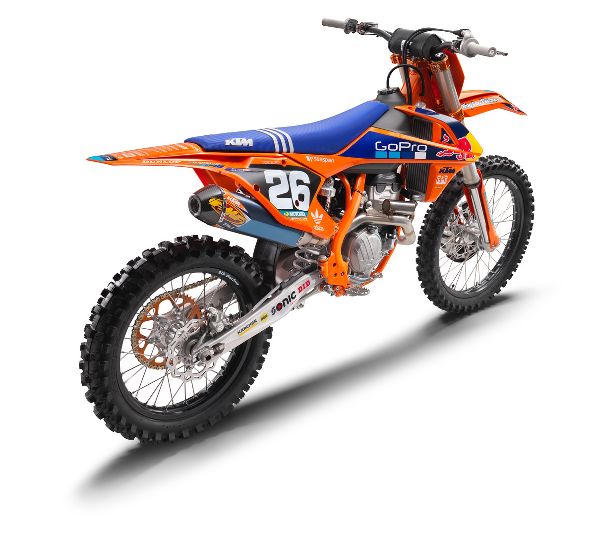 Zudem ist die 250er SX-F Factory Edition als das leichteste und leistungsstärkste Motorrad ihrer Klasse die perfekte Wahl für das Team von Troy Lee Designs / Red Bull / KTM.