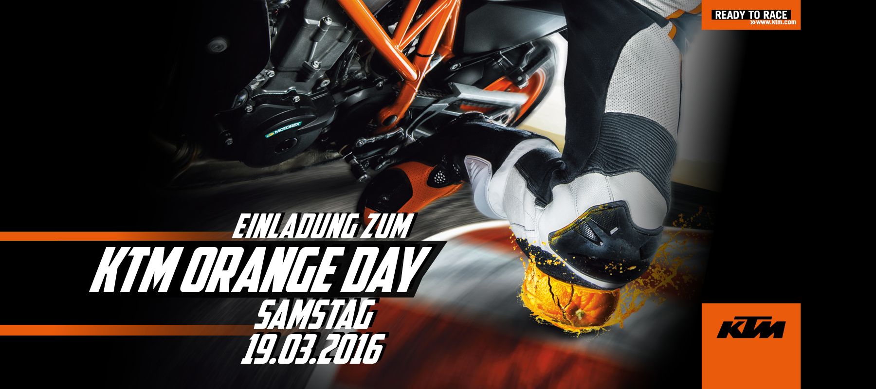 Wer wissen möchte, wie sich „READY TO RACE“ wirklich anfühlt, sollte am KTM Orange Day 2016 bei uns vorbeikommen und einen Termin für eine Probefahrt vereinbaren – auf einem Bike der heißesten KTM-Flotte, die es je gab.