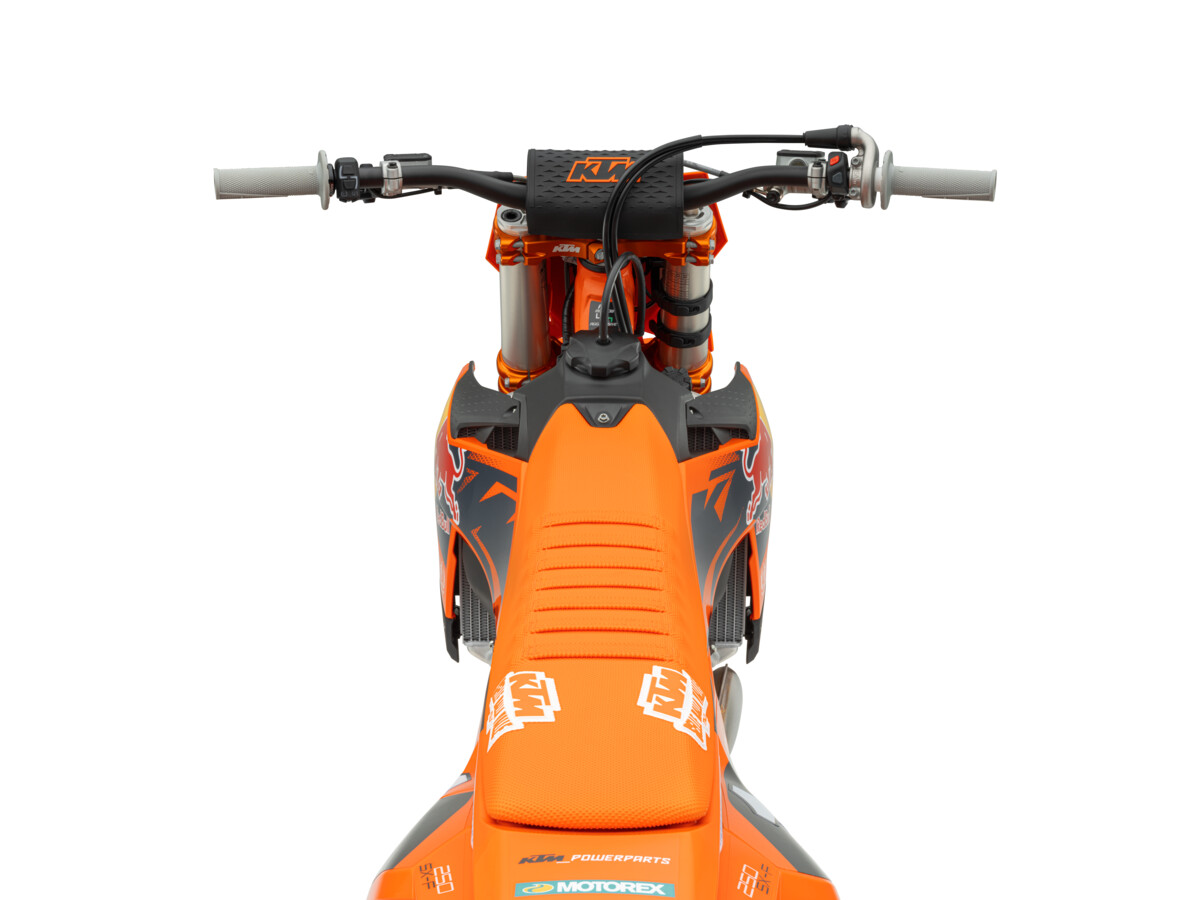 In bewährter KTM FACTORY EDITION-Manier sind die 2025er-Modelle mit hochwertigen Red Bull KTM Factory Racing-Komponenten ausgestattet, um den Erfolgen von namhaften Fahrern zu huldigen, die auch 2025 in der AMA Supercross- und Motocross-Serie wieder alles geben werden: Chase Sexton, Aaron Plessinger sowie Tom Vialle und Julien Beaumer.