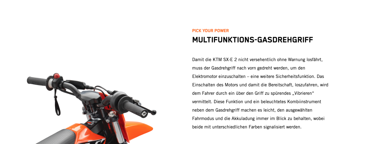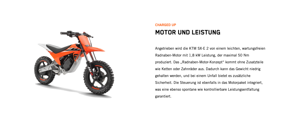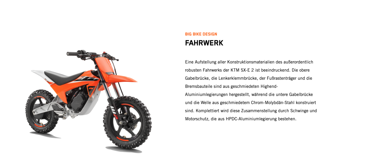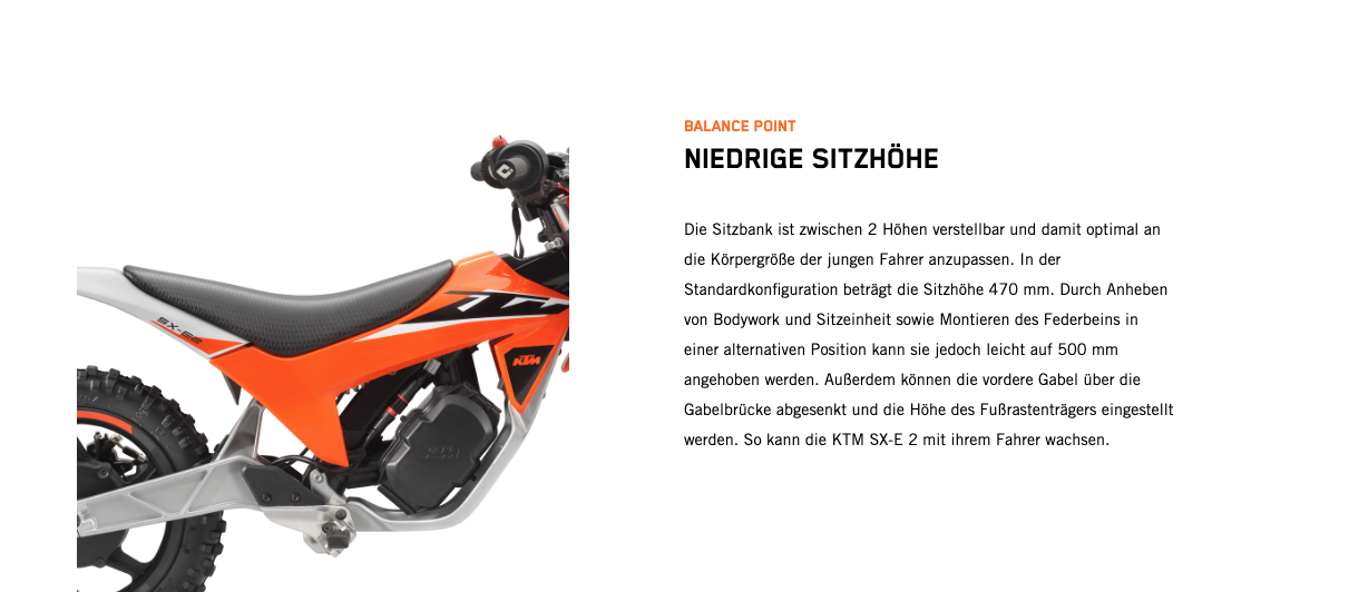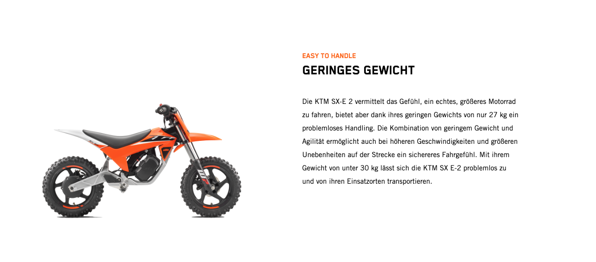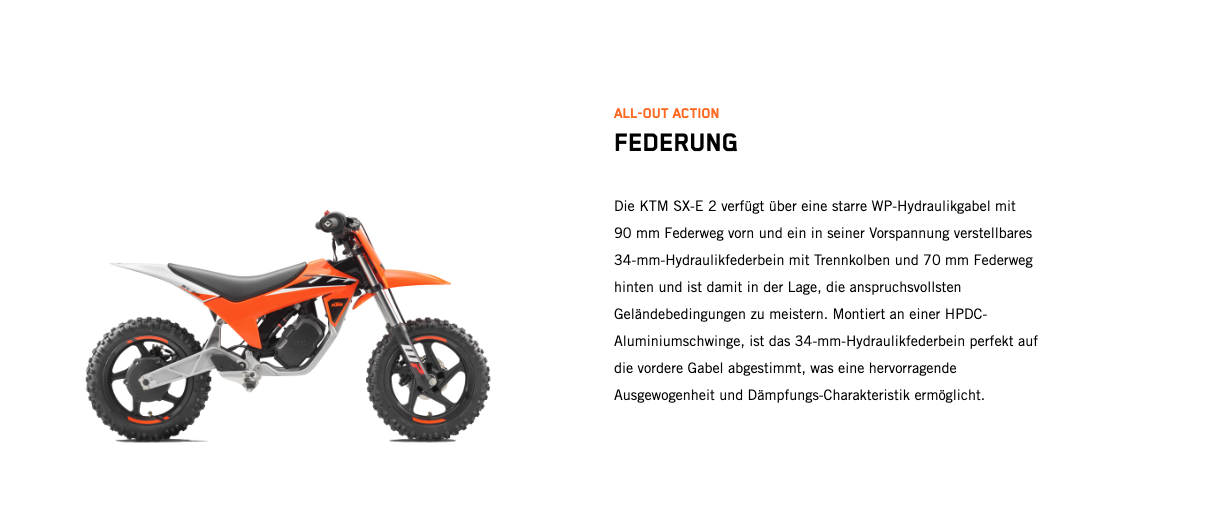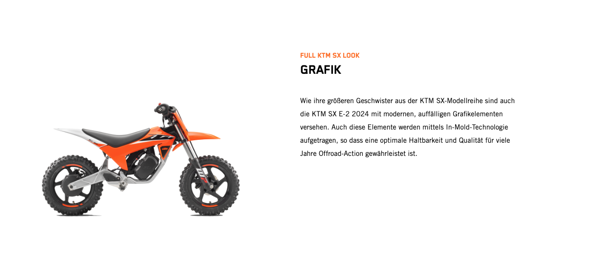 In jeder Hinsicht bereit für die Piste, ist die KTM SX-E 2 2024 eine starke Ergänzung der KTM Mini-Bikes mit elektrischem Antrieb. Ihr klares Ziel: eine Brücke bauen. Das zwischen dem Laufrad KTM SX-E 1.20 und dem elektrisch angetriebenen Mini-Crosser KTM SX-E 3 anzusiedelnde Bike ist für die jüngsten Fahrer die ideale Plattform, um den nächsten Schritt zu gehen.