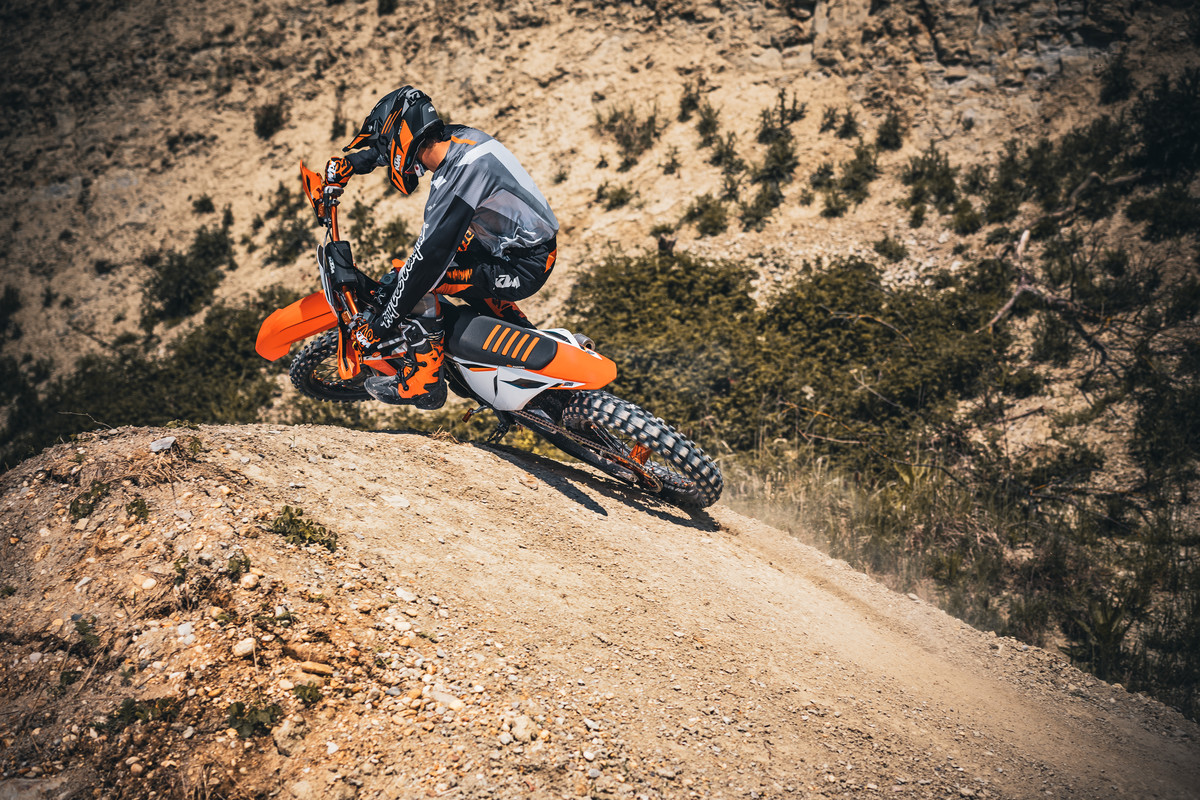 Die technischen Upgrades der 2021 Modelle konzentrieren sich vor allem auf das Fahrwerk und auf Verbesserungen an der Motorarchitektur. So wurde die Zuverlässigkeit maßgeblich gesteigert und das Feedback für den Fahrer, auch in den anspruchsvollsten Situationen, deutlich erhöht. Maßgeblich hierfür ist die neuste Dunlop Reifen-Technik (Dunlop Geomax MX-33) sowie eine allgemein härtere Grundeinstellung durch die neuen Federbeine und Gabeln der WP Suspension XACT PRO Reihe.