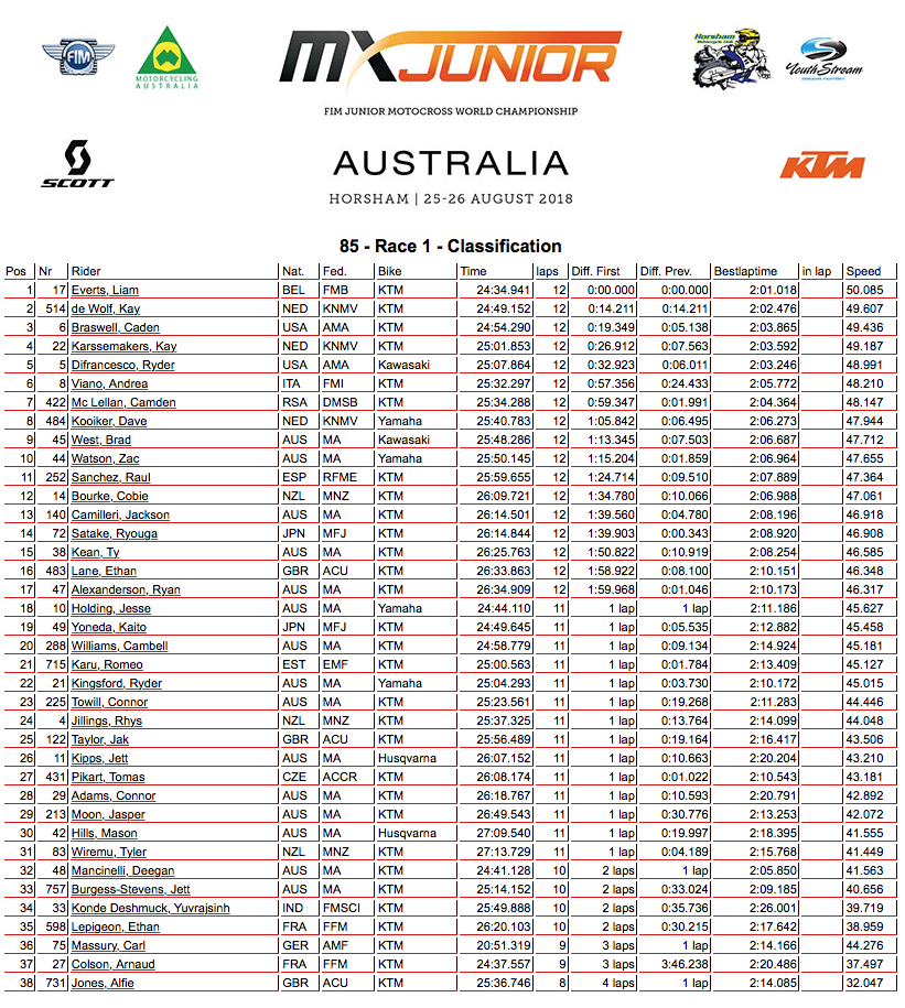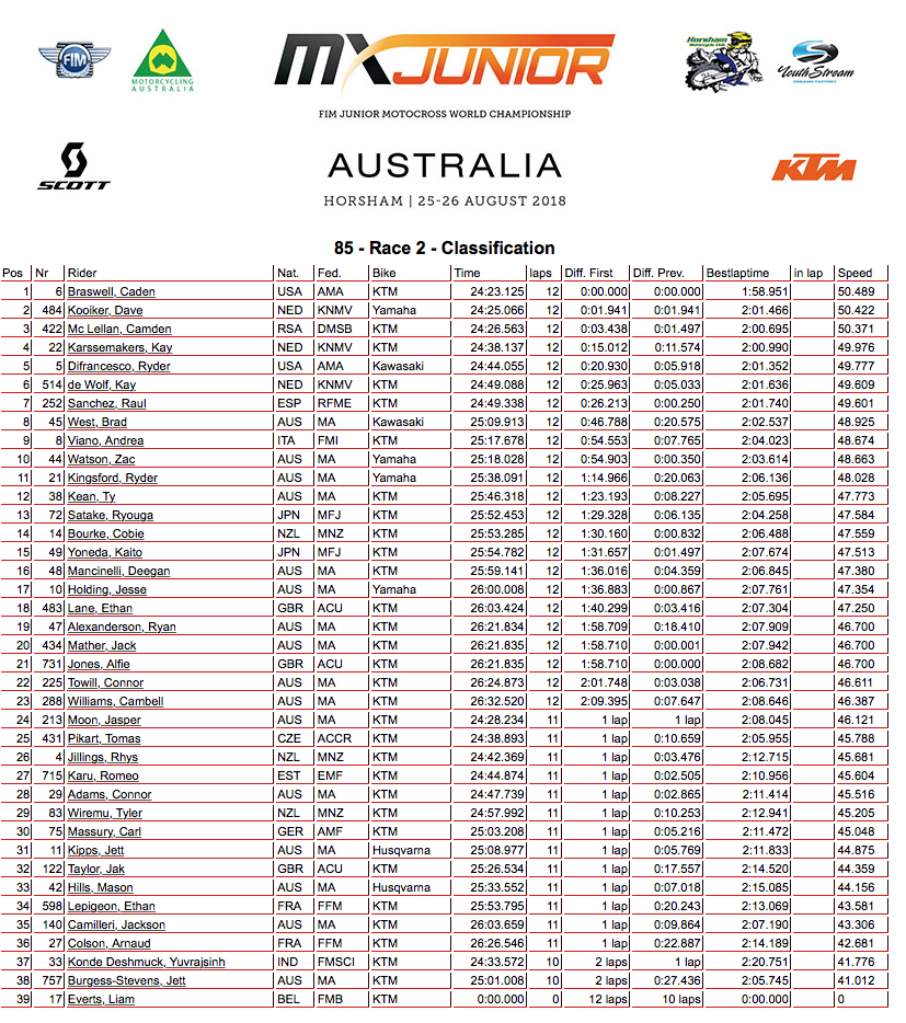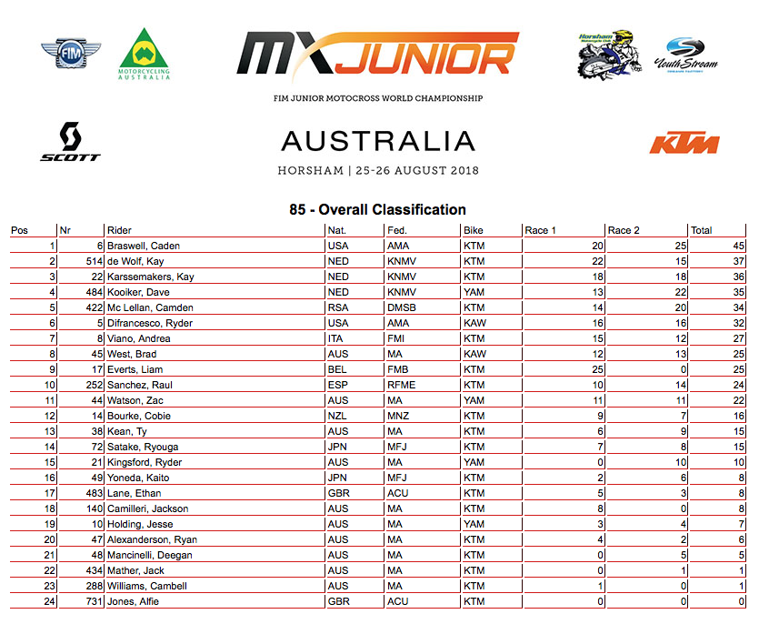 Die diesjährige Junior WM fand im Australischen Horsham statt. Mit dabei in der 85er Klasse KTM Kosak Pilot Camden Mc Lellan aus Süd-Afrika. Nach einem guten Quali auf Platz 2 am Samstag ging Camden als zweiter ans Startgatter am Sonntag.