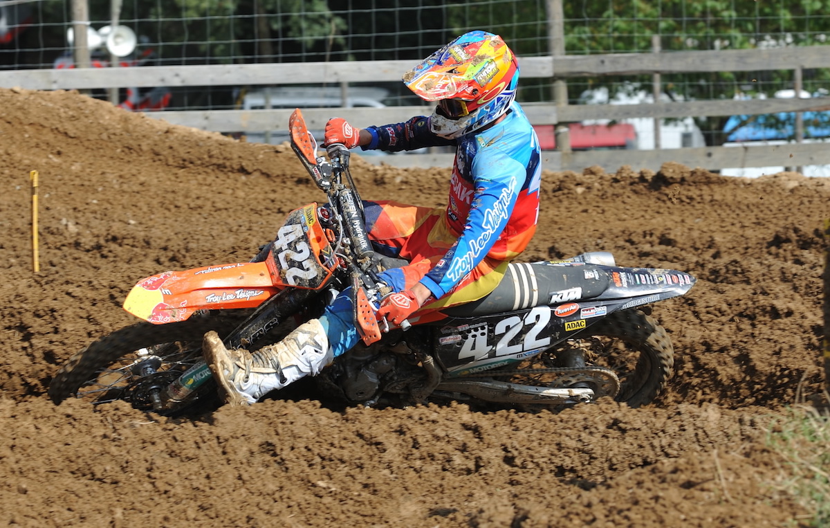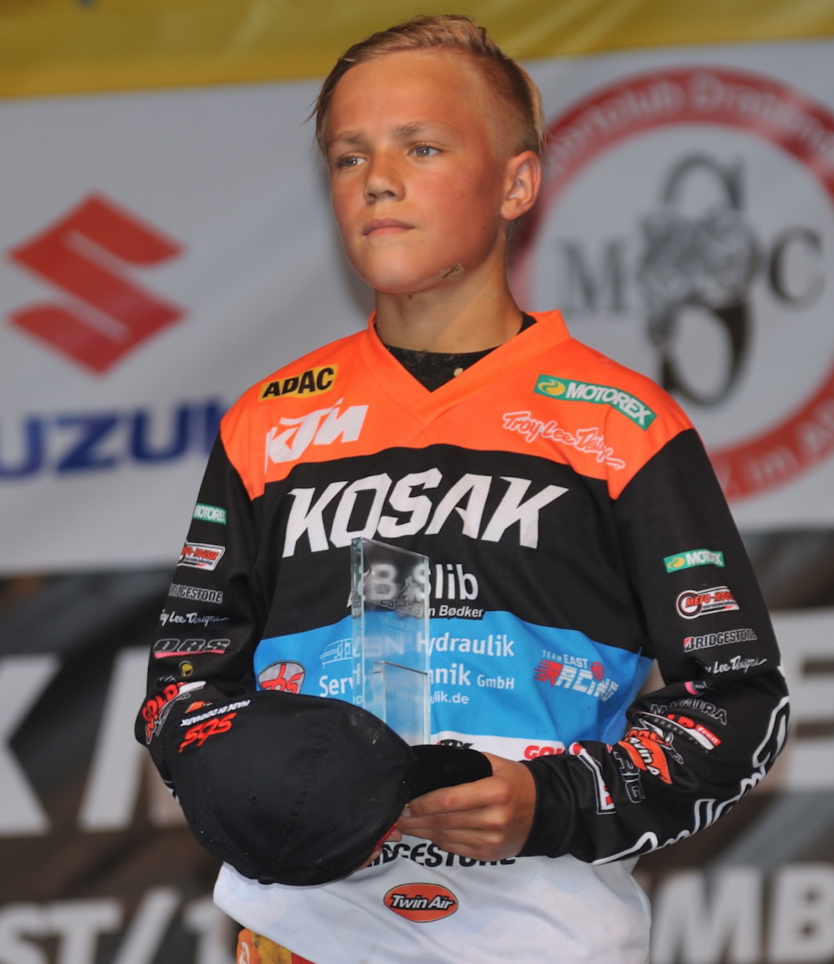 Da in Bielstein die Klasse Junior 125 nicht ausgetragen wurde, versuchten sich Camden Mc Lellan und Nick Doman der nächsthöheren Youngster Klasse. Da beide im kommenden Jahr in dieser Klasse fahren wollen, ging Mc Lellan mit dem Viertakter ins Rennen, während Doman mit der 125 ccm Maschine antrat. Camden qualifizierte sich mit der zehntschnellsten Zeit in seiner Gruppe direkt. Nick versuchte den technischen Leistungsnachteil mit einer mutigen Fahrweise wettzumachen. So richtig gelang das aber nicht gleich. Das Last Chance Rennen nahm er sehr beherzt in Angriff und schaffte mit dem Laufsieg locker die Qualifikation. Durch den Regen am Sonntagmorgen war es für die Beiden in der für sie neuen, sehr stark besetzten Klasse nicht einfach. Nach diversen Ausrutschern, Boxenstopp mit Brillentausch, mussten sie sich sogar eine Überrundung gefallen lassen und kamen auf den Plätzen 24, Mc Lellan, und 29, Doman, ins Ziel. Auch der zweite Lauf war mit den Plätzen 29 und 31 wieder eine Erfahrung und ein zusätzliches, gutes Training.