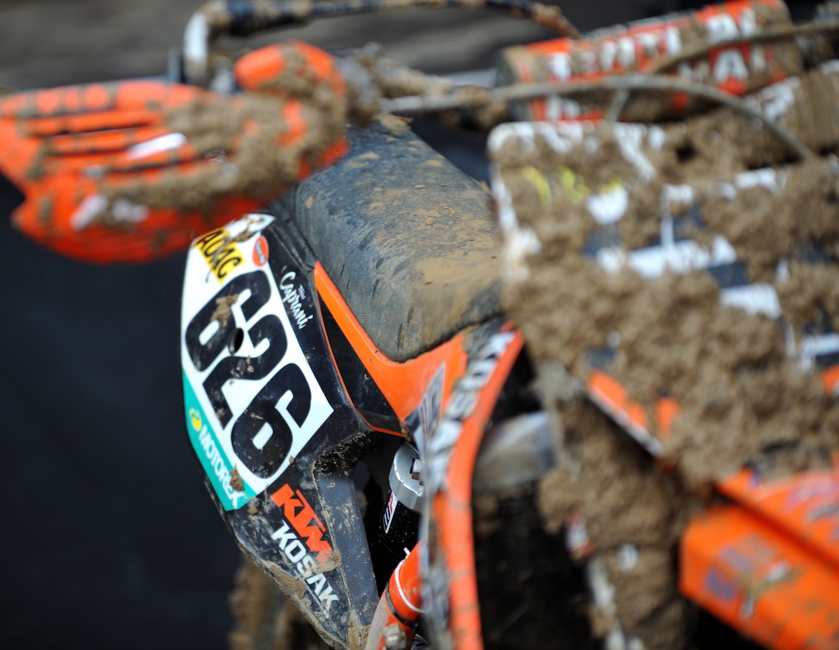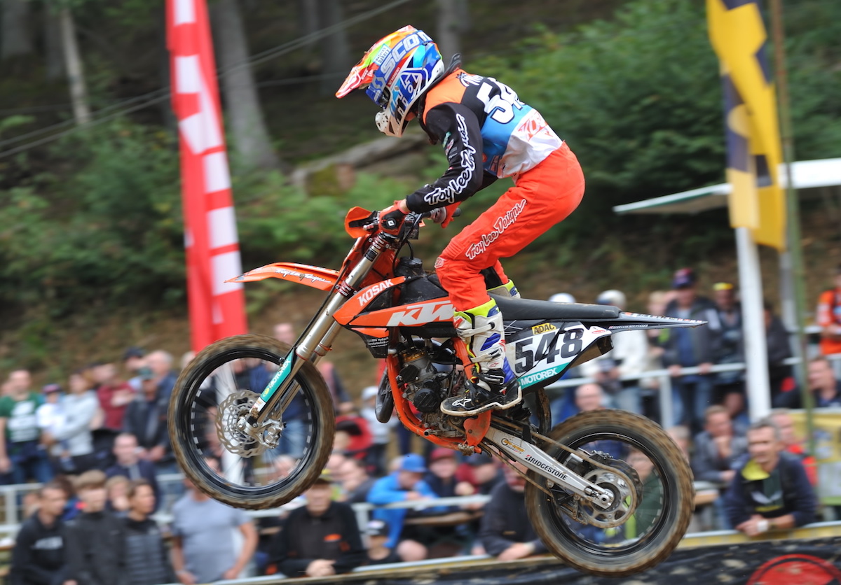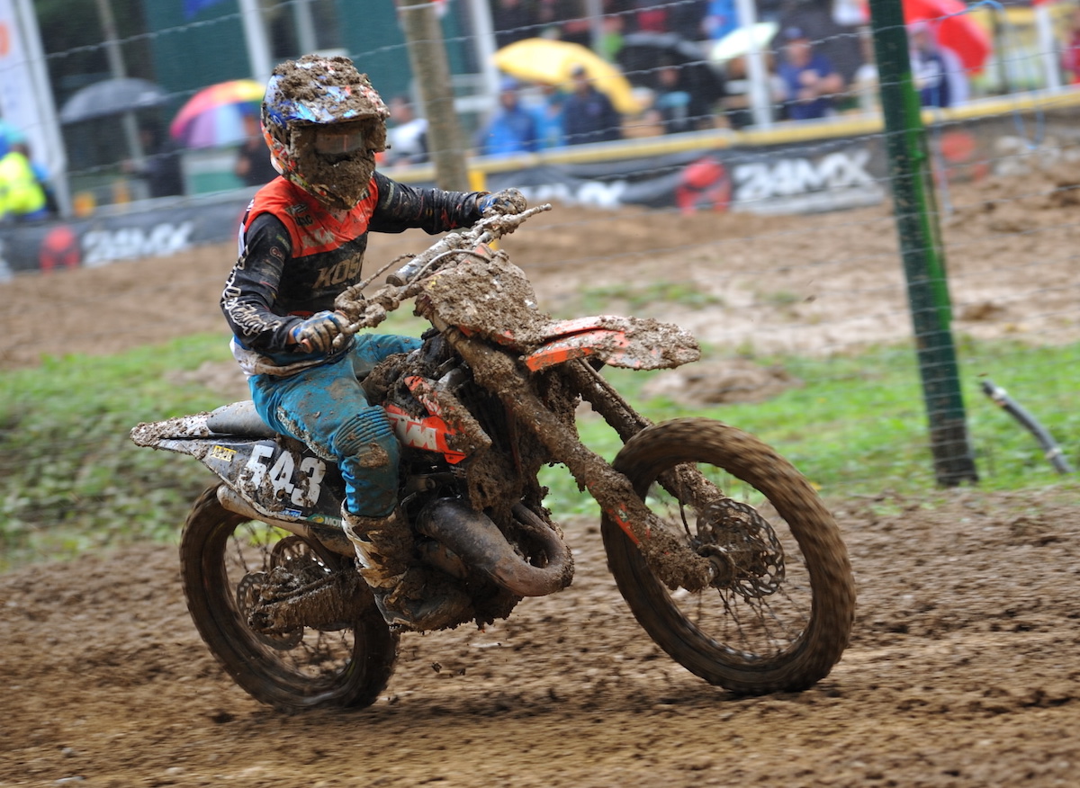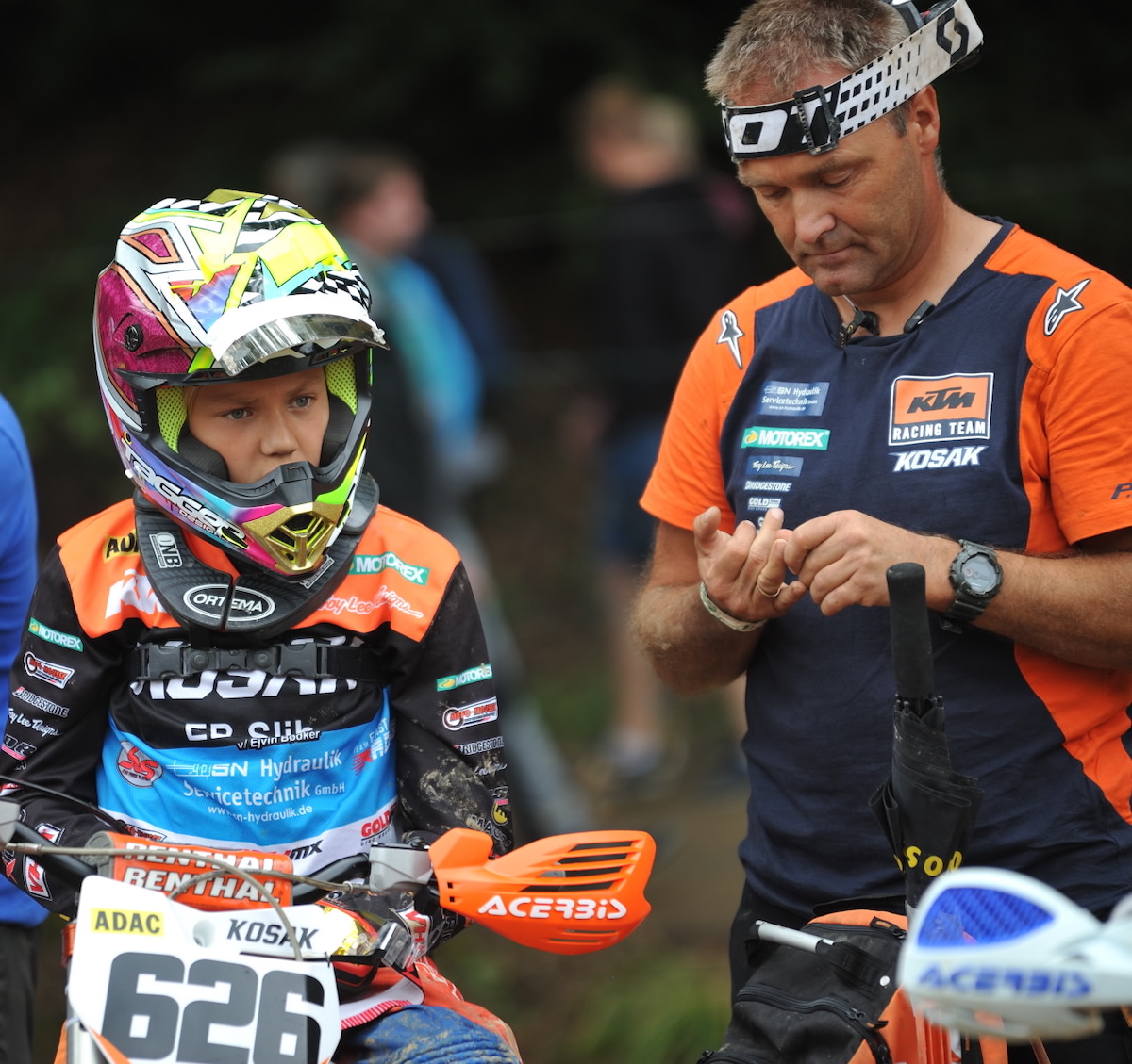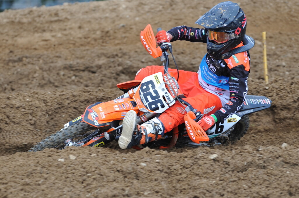 Die vorletzte Veranstaltung in Bielstein, in der Nähe von Gummersbach, war von Wetterkapriolen begleitet. Am Samstag zu den Qualifikationen lagen die Temperaturen noch über der 30 Grad Marke. In der Nacht ging ein heftiger Wolkenbruch auf den „Bielsteiner Waldkurs“ nieder, drückte die Temperaturen unter die 20 Grad Marke und machte die Strecke durch zusätzlichen Nieselregen am Vormittag extrem tief und rutschig. Das spürten besonders die Junioren 85 und 125, die bereits am Sonntagvormittag ihr erstes Rennen fahren mussten.