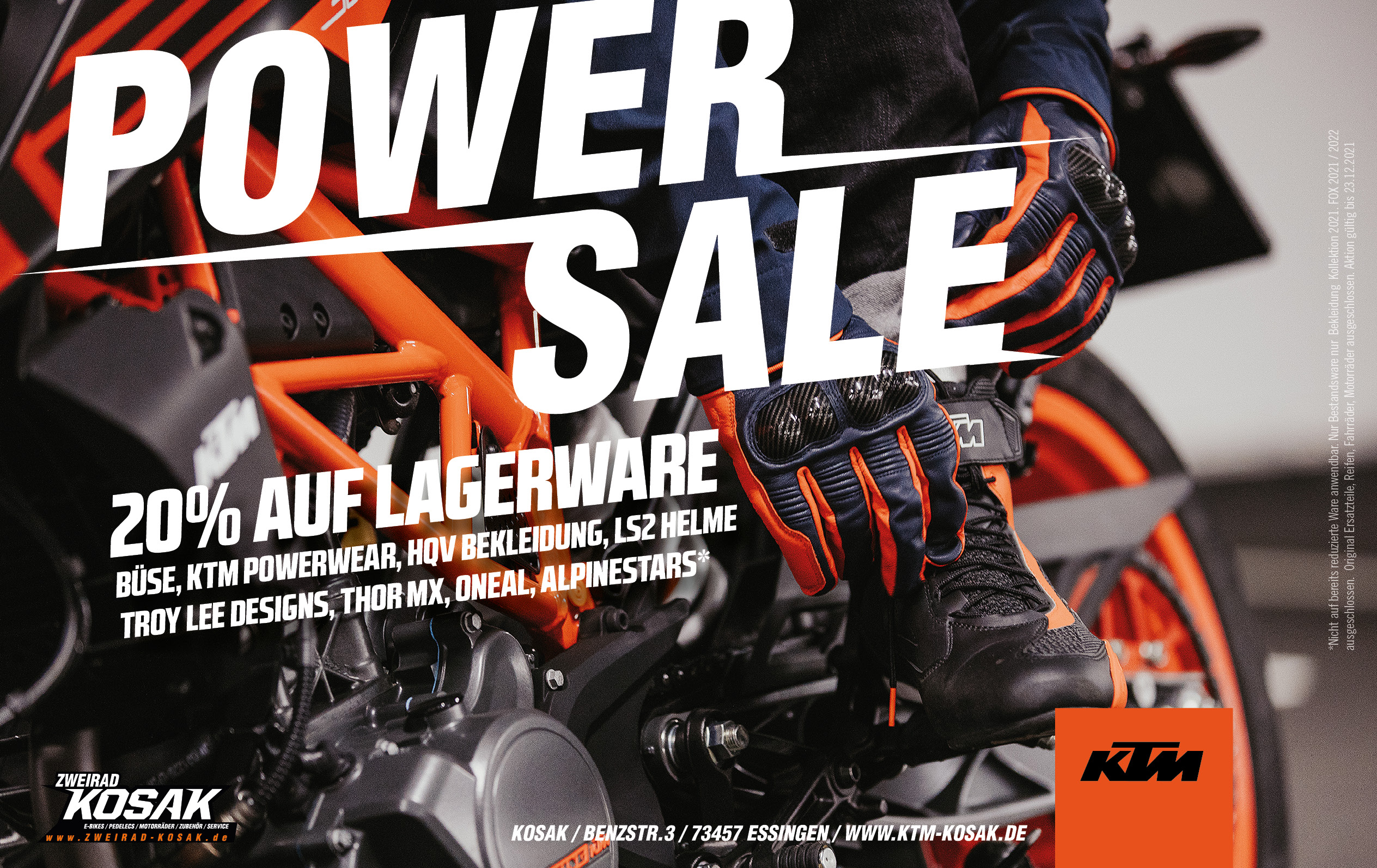 Bekleidung, Schutzkleidung und Accessoire Bestandsware jetzt 20%* reduziert. Marken wie KTM & Husqvarna Powerwear, 100% Brillen, Büse Bekleidung, Alpinestars Bekleidung, LS2 Helme, Troy Lee Designs, THOR MX, uvm.