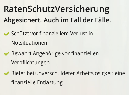 Die Verbindung von AutoFlex und der RatenSchutzVersicherung (RSV) spielt Ihnen in die Hände, wenn Sie sich nicht auf einen starren Ratenzahlungsplan, wohl aber auf eine gesicherte Darlehenstilgung festlegen wollen. Denn im Ernstfall führt der Versicherer die Ratenzahlung fort.