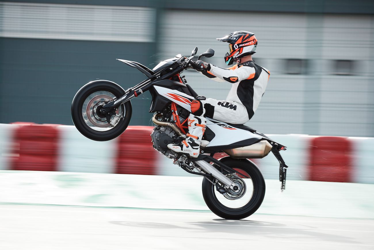 Eine breite Palette an Fahrassistenzsystemen garantiert, dass der Fahrer in jeder Situation das Maximum aus seiner KTM 690 SMC R herausholen kann. Zwei Fahrmodi (Street und Sport), Kurven-ABS, die schräglagenabhängig regelnde Motorrad-Traktionskontrolle MTC und der Quickshifter+ sind nun erstmals verbaut, während das bewährte Supermoto-ABS Hinterrad-Drifts ermöglicht, ohne das Vertrauen in das Vorderrad zu verlieren.