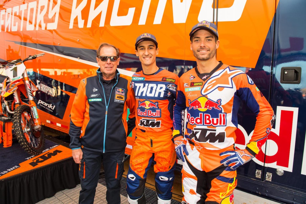 Nach drei aufeinanderfolgenden AMA 450 SX-Titeln mit dem kürzlich zurückgetretenen Ryan Dungey freut sich das Red Bull KTM Factory Racing Team auf die Wachablösung an Bord der KTM 450 SX-F Factory Edition. Der Franzose Marvin Musquin, der seine dritte Saison in der größeren Hubraumklasse beginnt, blickt auf einen fantastischen Saisonausklang zurück. Mit drei Laufsiegen – was zuvor nur einem Fahrer gelungen war – hatte er beim Monster Energy Cup 1 Million Dollar gewonnen und setzte mit den Siegen beim Red Bull Straight Rhythm und Paris Supercross noch einen drauf.