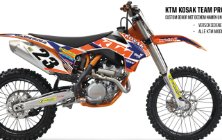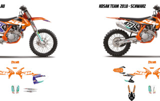 KOSAK KTM DEKOR - DESIGN 2021 Kosak KTM Dekor aus dicker, strapazierfähiger Folie. Komplett Kit enthält einen Aufkleber für Spoiler, Nummerntafeln, Front- und Heckkotflügel, Schwinge, Gabelschützer. Personalisieren Sie ihr Dekor mit ihrer Startnummer und ihrem Name. Zusätzliche Logos können gegen Aufpreis von 10 € pro Logo platziert werden. Zusätzliche Plastikteile [...]