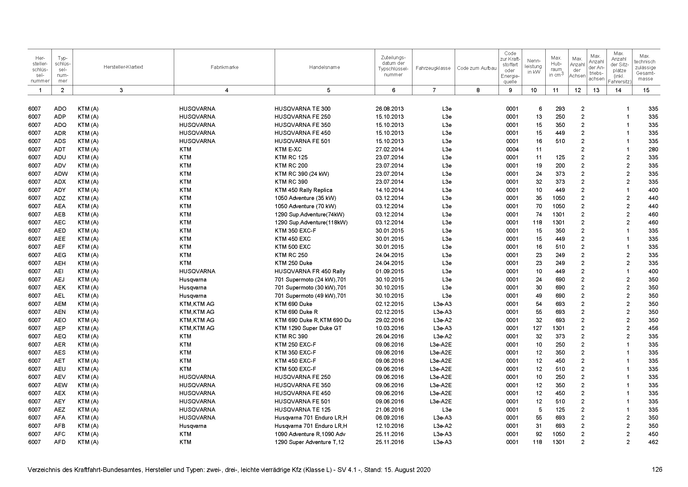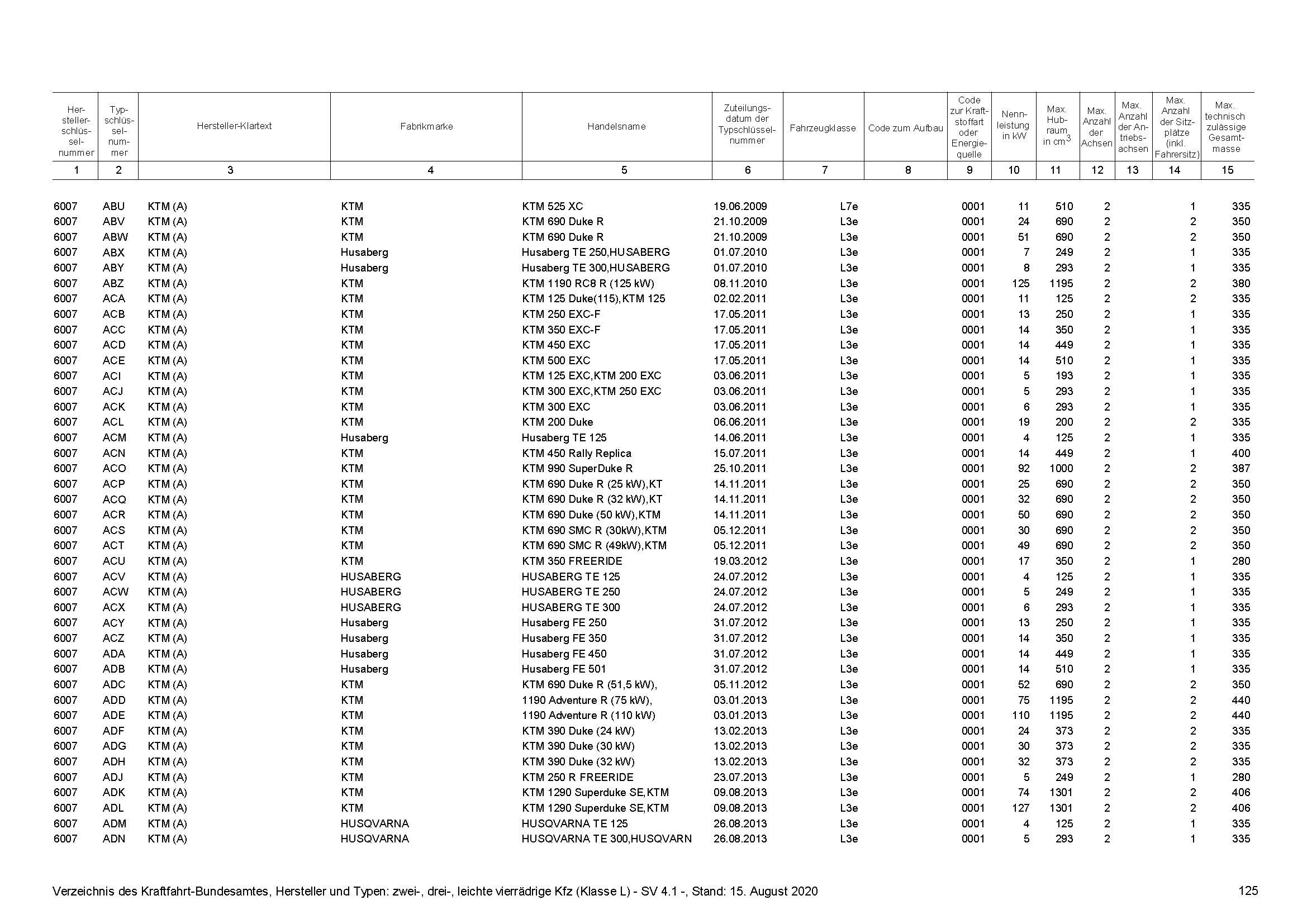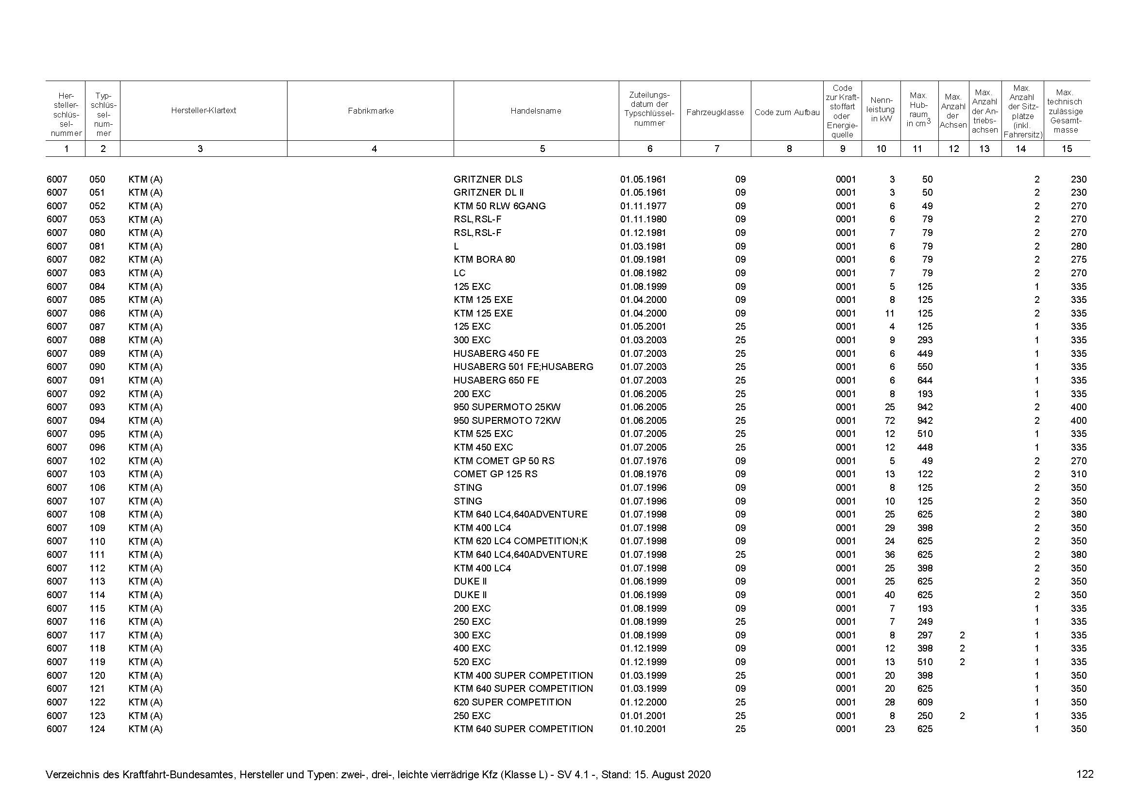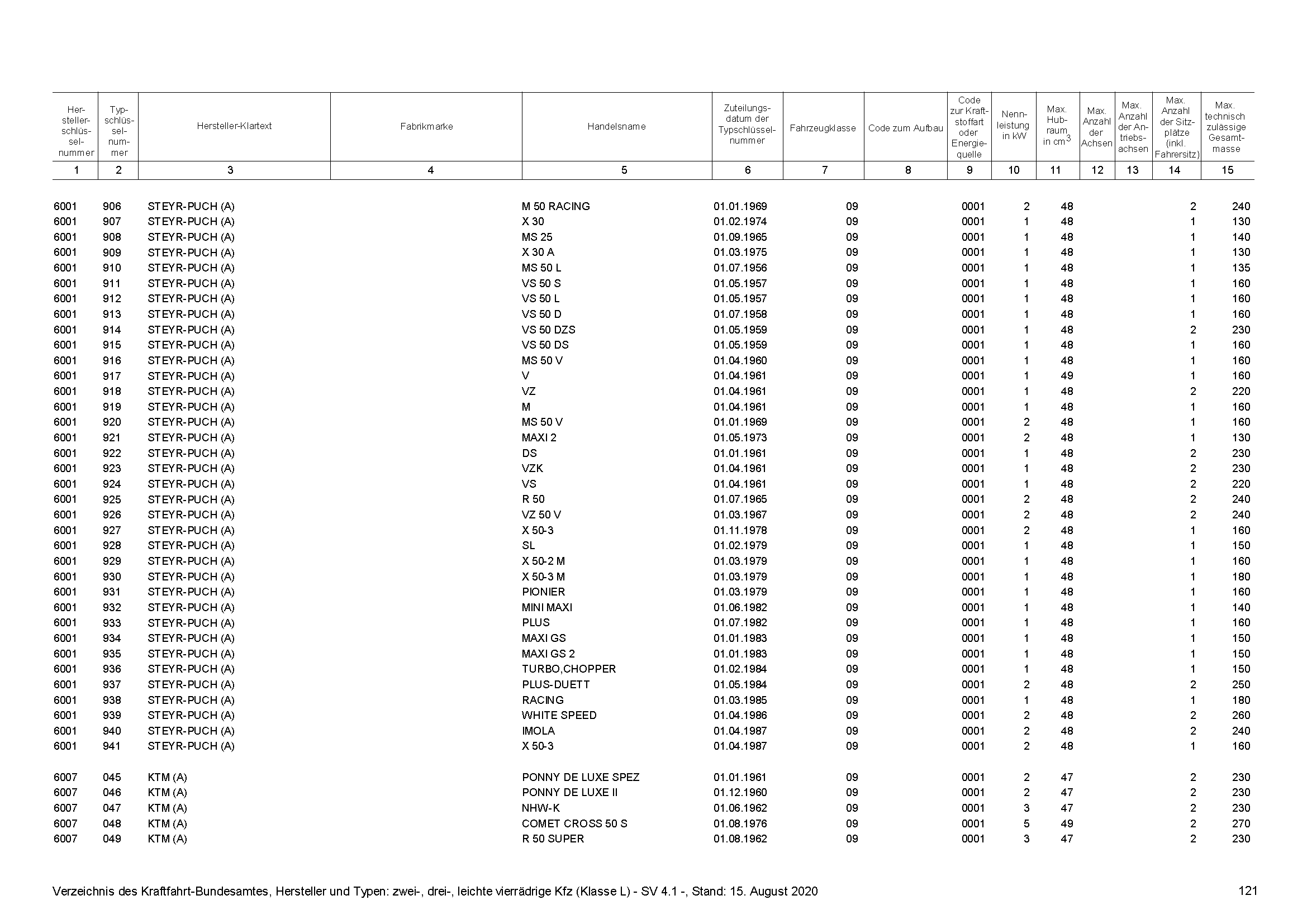 insgesamt etwa 2 500 Typen des ehemaligen Kraftfahrzeugtechnischen Amtes (KTA) betroffen.