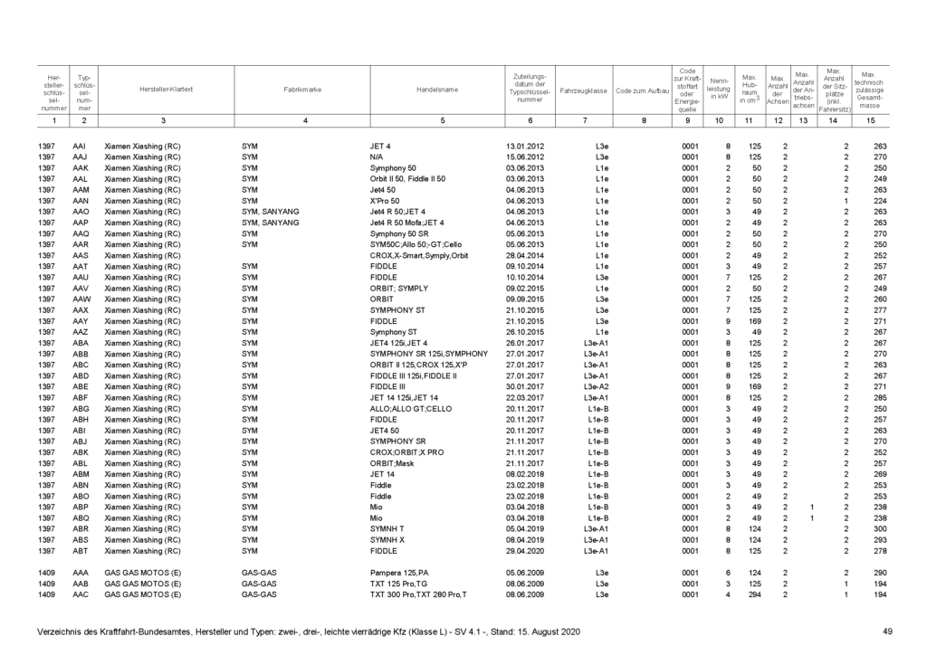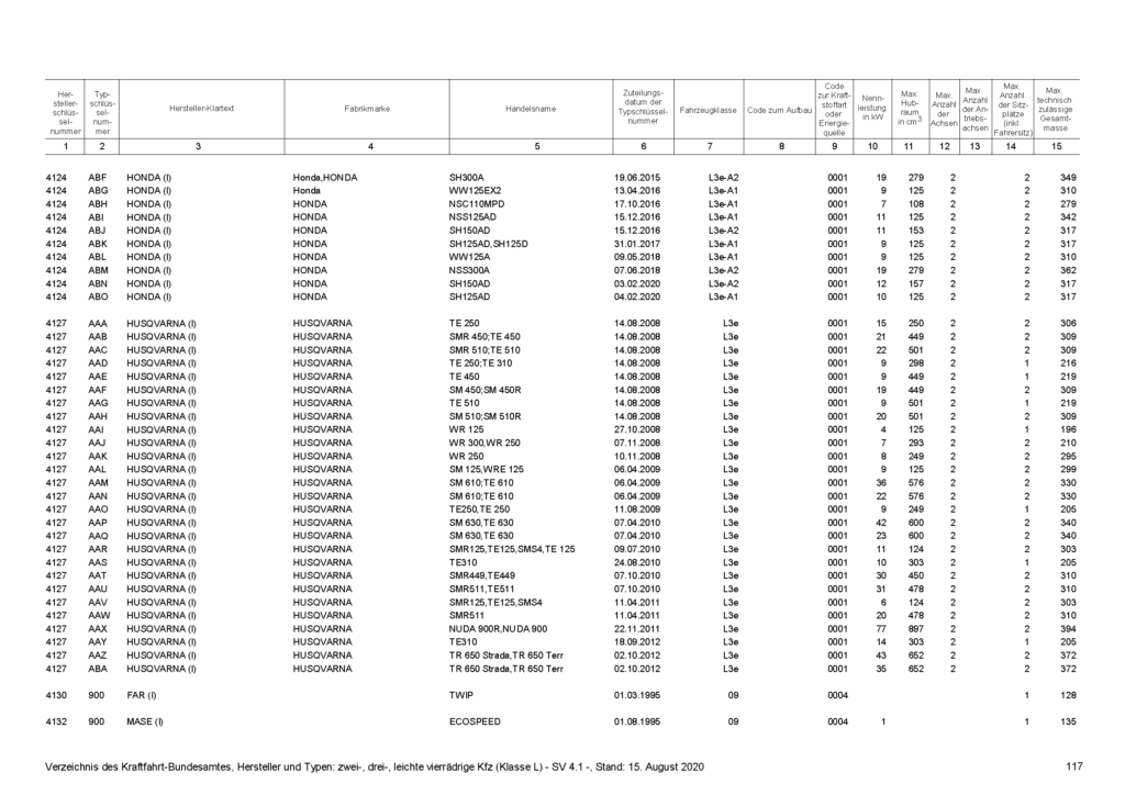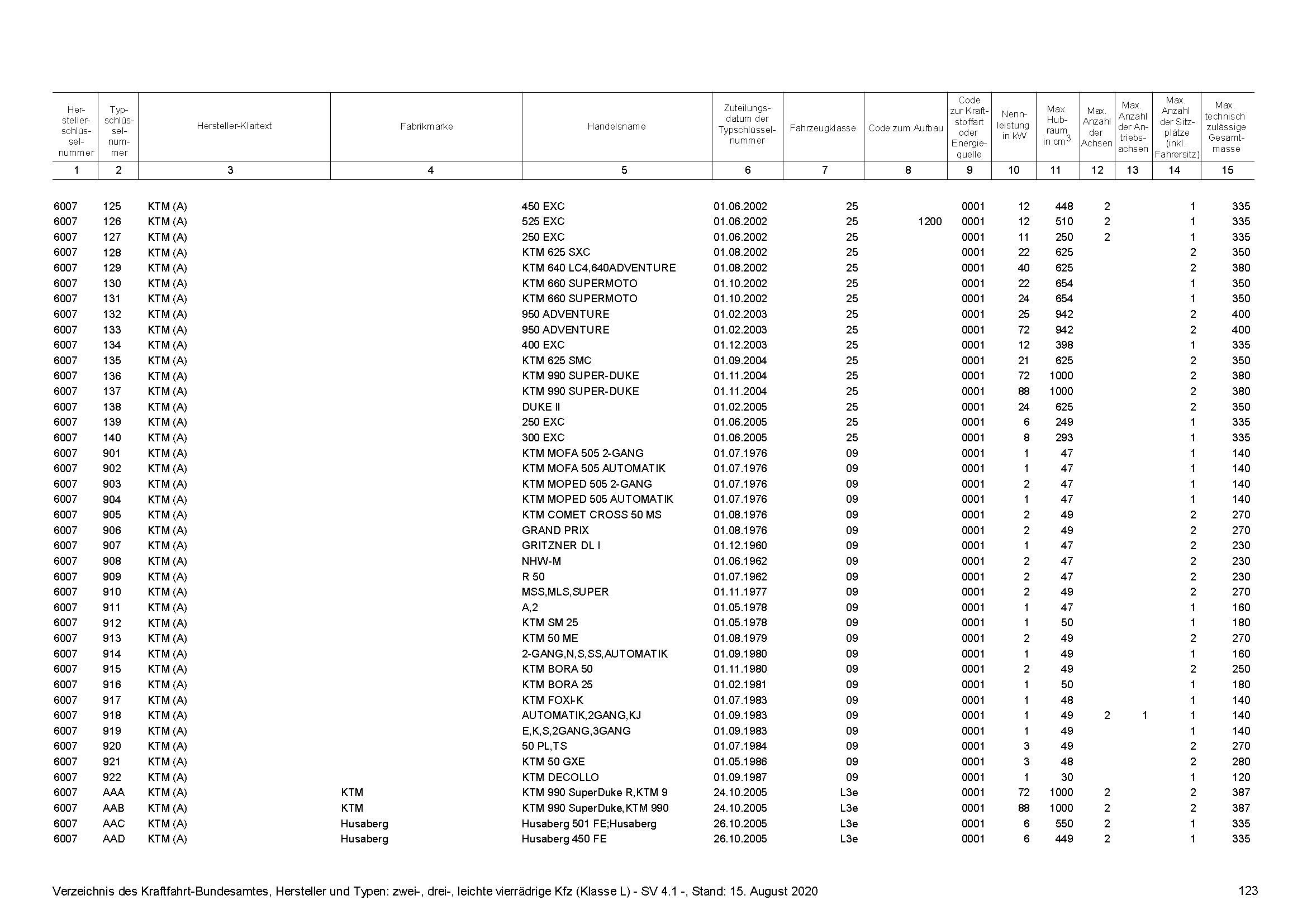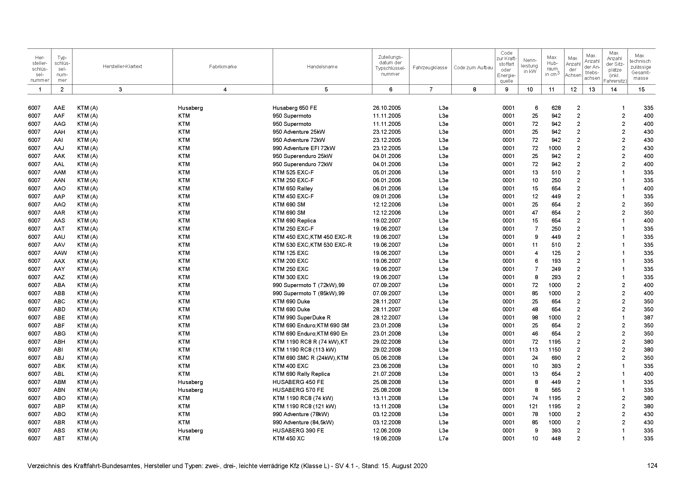 insgesamt etwa 2 500 Typen des ehemaligen Kraftfahrzeugtechnischen Amtes (KTA) betroffen.