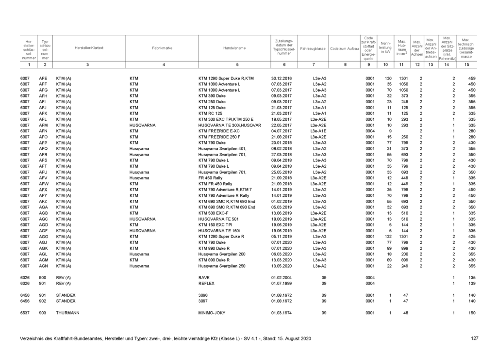 KTM 390 Adventure – Hersteller: 6007 / Typ: AGH