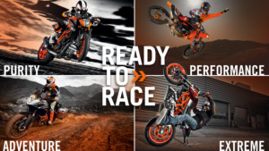 Die Rally Paris Dakar dominieren die Oberösterreicher seit dem Jahr 2001. Mit dem heute weltbekannten Slogan „READY TO RACE“ macht KTM den Rennsport zum zentralen Identifikationspunkt der Marke. 2003 debütiert die kompromisslose Travel-Enduro KTM 950 ADVENTURE. Zugleich steigen die Mattighofener erfolgreich in die Straßen-WM ein – Casey Stoner holt den ersten Sieg auf dem orangefarbenen 125 ccm Grand Prix Motorrad. Wenig später präsentiert KTM mit der KTM 990 SUPER DUKE und der KTM 950 SUPERMOTO seine ersten reinrassigen Straßenmotorräder. 2008 folgt das erste österreichische Superbike: die faszinierende KTM 1190 RC8, mit der die Marke schon ein Jahr später in der IDM-Superbike-Klasse mitmischt und auf Anhieb den Vizetitel erobert.